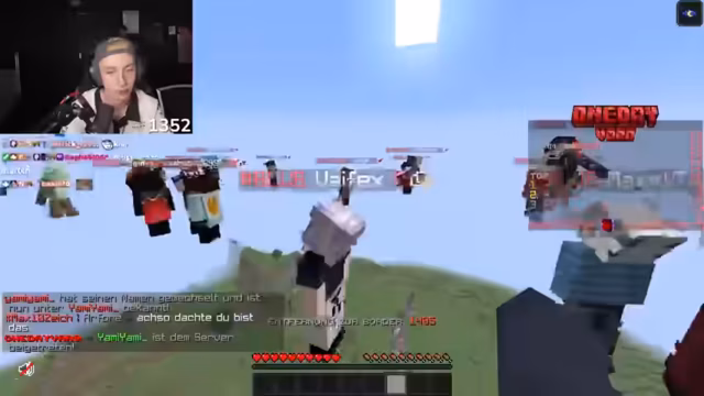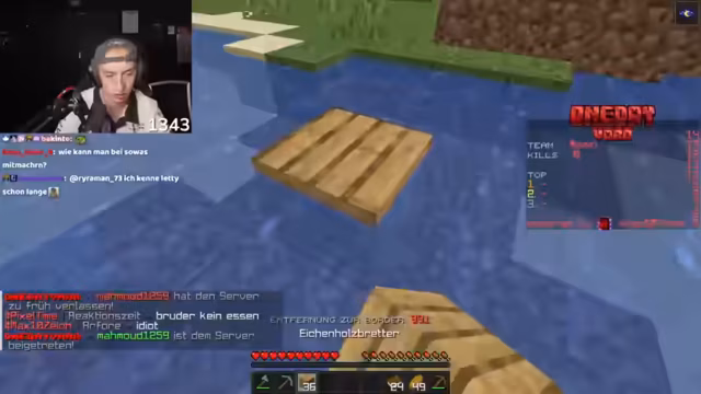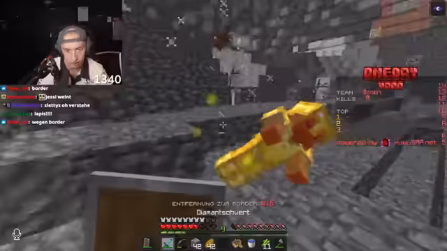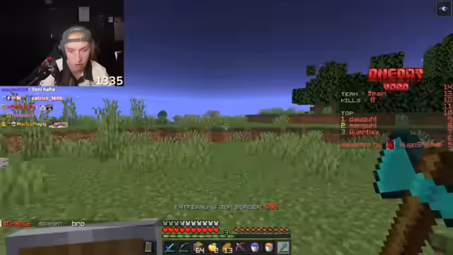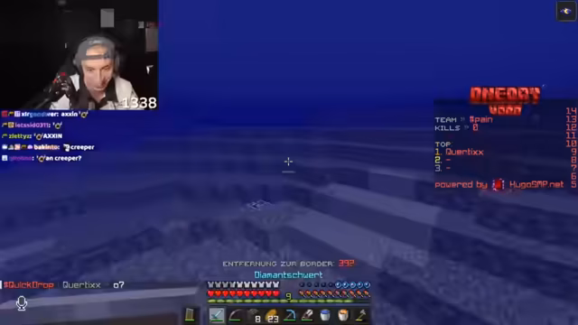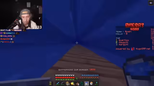 01:16:52Nachdem die anfängliche Ausrüstung gesichert ist, fahren die beiden mit dem Sammeln von höherwertigen Ressourcen fort. Der Streamer erkundet einen Shipwreck und einen Ozeantempel, um an Goldblöcke, Eisen und andere nützliche Items zu gelangen. Ihr strategisches Vorgehen wird fortgesetzt, indem sie versuchen, gute Baumfarmen zu finden, während sie die Position der Border im Auge behalten und die Nähe zu anderen Spielern meiden.