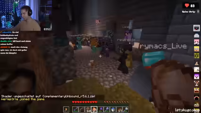 05:38:19Die Auktion geht mit weiteren Containern, darunter einem Obsidian- und einem Holz-Container, weiter. Immer wieder kommt es zu spannenden Bietergefechten und irrational hohen Geboten für relativ geringe wertvolle Gegenstände. Die Stimmung schwankt zwischen Frustration über gefüllte Kisten und Euphorie bei großen Gewinnen. So gewinnt ein Teilnehmer 64 Ancient Debris und ein anderer erhält zwei Stacks Diamanten. Die Live-Auktion entwickelt sich zum zentralen emotionalen Brennpunkt des Streams, bei dem die Teilnehmer um wertvolle Ressourcen buhlen und ihre Strategien offenlegen.