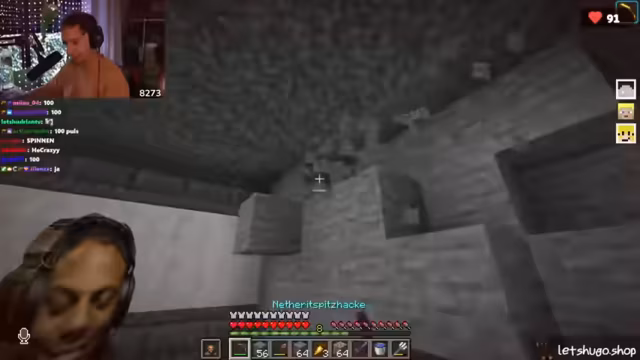 06:58:33Hugo gerät in den Verdacht, die Serverregeln durch Item-Duplizieren gebrochen zu haben. Er gibt an, nach einem Bann auf seinem Hauptaccount auf einem Zweitaccount eingeloggt zu sein, um zu prüfen, ob sich dort noch Items befunden hätten. Dabei habe er Full-Netherit-Rüstung und Diablock-Truhe entdeckt. Er räumt ein, diese Items auf seinen Hauptaccount transferiert zu haben, um "nahtlos weiterspielen" zu können, und gibt dies als "schadenlos ausgenutzt" zu.