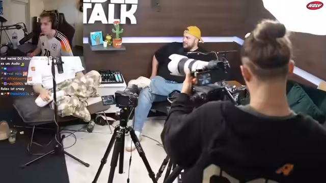 00:42:13Es wird die Ankunft bei einem Podcast-Termin geschildert, wobei es Probleme mit einem fehlenden Kopfhöreradapter gibt. Es folgt ein kurzer Einblick in die Vorbereitungen für den Podcast, einschließlich eines Gesprächs über organisatorische Dinge. Der Streamer packt sein Essen aus, das er während des Streams snacken möchte. Es wird ein Upgrade im Studio gezeigt, das den Zugang zu einem Knopf erleichtert. Es folgt ein Soundcheck und ein Gespräch über die neue Technik im Podcast-Studio. Der Streamer betont, dass er und Dominik keine Ahnung von der Technik haben und dass Kenny und Tim sich darum gekümmert haben. Er gibt Behind-the-Scenes-Einblicke und verrät, dass er oft in seinen Eiern chillt, wenn er von hinten gefilmt wird.