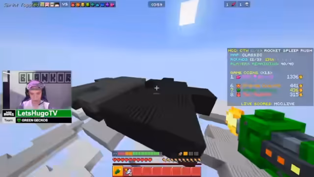 01:36:06Zwischen den Spielen gibt es kurze Pausen, in denen der Streamer über die Teilnahme am Finale spricht und den Willen zum Sieg äußert. Die Wahl des nächsten Spiels, Meltdown, wird im Team getroffen, obwohl der Modus nicht gut genug verstanden wird. Der Streamer erklärt kurz die Regeln: Punkte durch Abbau von Blöcken oder durch das Eliminieren von ganzen Teams. Wichtig ist der "Heater", ein Gegenstand, der im Kampf platziert werden kann, um Schaden zu heilen.