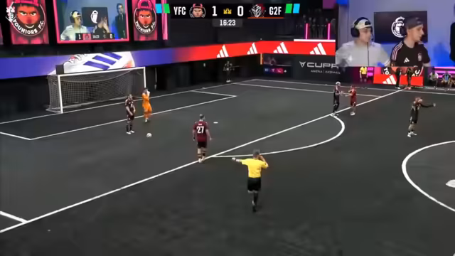 00:02:18Nach einem fragwürdigen Zweikampf, bei dem der Torwart mit dem Knie in den Ball geht, wird ein Strafstoß für das gegnerische Team gegeben. Wenig später kommt es zu einem entscheidenden technischen Ausfall beim Gegner, der zum Spielabbruch führt. Das Ergebnis steht somit fest und wird mit 2-0 für das Team des Streamers gewertet, was die Spannung vor dem eigentlichen Finale vorwegnimmt.