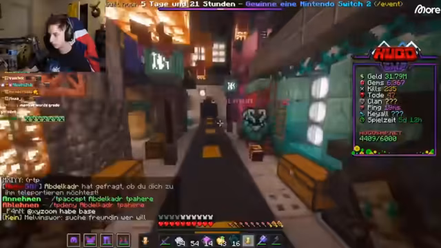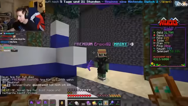 03:35:01Nachdem die Challenge vorerst pausiert ist, wendet sich Hugo der Community zu. Er gibt bekannt, dass das offizielle Ende des Servers voraussichtlich Ende des Monats stattfinden wird. Hugo sucht nun aktiv nach einem Clan, dem er beitreten kann, und lädt die Anführer per TPA ein, ihm ihre Basen zu zeigen. Er untersucht verschiedene Clans, darunter den 'MÜV-Clan' und den 'Maniac-Clan', um deren Struktur, Aktivität und Ressourcen zu bewerten.