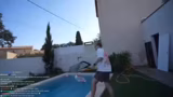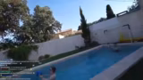 02:42:07Beim Umziehen zum Pool kommt es zu tumultartigen Szenen, bei denen sich die Streamer gegenseitig ins Wasser stoßen und sich jagen. Es finden verschiedene spielerische Wettkämpfe statt, darunter ein Ballfangspiel und ein Tauziehen im Wasser. Die Stimmung ist ausgelassen und der Fokus liegt auf dem gemeinsamen Spaß und den körperlichen Auseinandersetzungen.