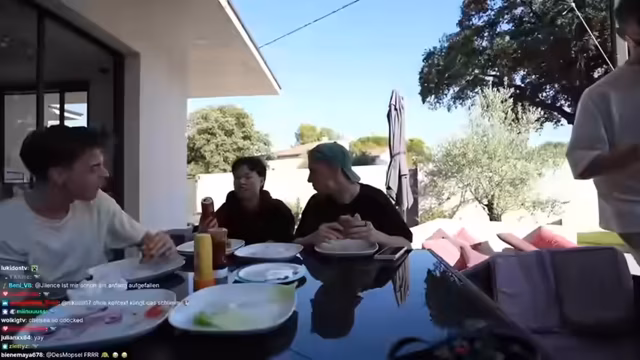 00:12:12Der Stream beginnt mit dem offiziellen Start der zehntägigen Streamer-WG. Nach anfänglichen technischen Problemen und einer kurzen Pause werden die ersten Eindrücke der gemieteten Villa in Frankreich geteilt. Die Streamer sind von dem Außenbereich mit Pool, Garten, Grills und einem Tisch begeistert, beschreiben aber auch, dass die Wände sehr dünn sind und man alles hört, was zu einer ungewollten Intimität führen kann. Die Ankündigung einer Frau vom RWB, die kurz vorbeikommen wollte, sorgt für einen kleinen Stress, da die WG noch nicht vollständig eingerichtet ist.