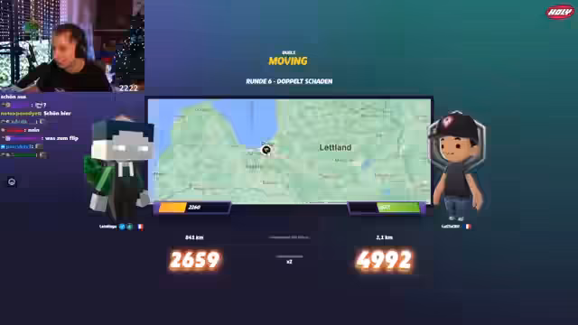 02:18:44Der Streamer und ein Gast diskutieren über GeoGuessr-Fähigkeiten, wobei der Streamer sich selbst als Anfänger einschätzt. Der Streamer bietet an, eine Runde GeoGuessr zu spielen und dabei vom Gast gecoacht zu werden. Zuvor spricht der Streamer über seine sportlichen Aktivitäten und die positiven Auswirkungen auf seine Energie und Müdigkeit, was ihn motiviert, weiterhin Sport zu treiben, trotz eines vollen Streaming-Zeitplans. Er erwähnt eine 'Sportsstreak' und die Herausforderungen, Sport in verschiedenen Umgebungen wie zu Hause und in Köln zu integrieren. Abschließend wird die Vorfreude auf eine gemeinsame GeoGuessr-Runde betont, in der der Gast seine Fähigkeiten demonstriert und der Streamer analysiert.