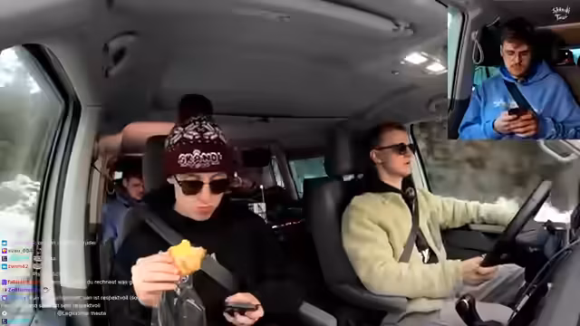 07:14:08Ein Zuschauer hat mit Kommilitonen ein Spiel für die Uni programmiert, das aber scheiße geworden ist. Es wird diskutiert, ob man Auto fahren darf, wenn man das Handy am Arm befestigt hat oder den Chat als Head-Up-Display nutzt. Es wird beschlossen, dass die Tour heute beendet werden sollte. Die Gruppe isst im Auto und es wird überlegt, ob man den Basti-Stream anmachen soll. Es wird ein Anruf erwartet und über die Werbung von Pfizer gesprochen. Es wird über ein neues Gefängnis in der Nähe gesprochen und die damit verbundenen Kindheitserinnerungen. Es wird über einen Tag der offenen Tür im Gefängnis gesprochen und die Angst, dort hingebracht zu werden. Es wird über frühere Erfahrungen mit Psychiatrieaufenthalten gesprochen.