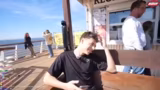00:45:31Nach längerer Suche wird der gewünschte Apfelkuchen in einem Café namens "Club Capri" gefunden. Die Bestellung verläuft zunächst holprig, führt aber schließlich zum Erfolg. Während des Wartens auf das Essen werden Spaziergänge am Strand unternommen und es kommt zu positiven Interaktionen mit Passanten, die den Stream erkennen und Fotos machen möchten.