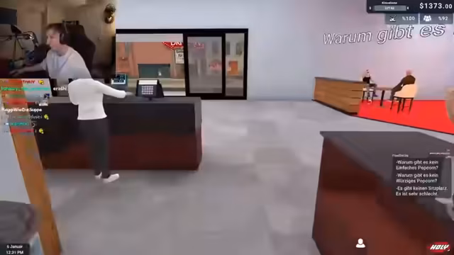 04:30:29Der Streamer kämpft mit dem Kino-Simulator, in dem er Mitarbeiter einstellen und verwalten muss. Er zeigt Frustration über die Arbeit und die anfallenden Aufgaben. Er beschäftigt sich mit dem Kino-Management, dem Vertrieb von Tickets, Snacks und Getränken, sowie der Notwendigkeit, neue Filme und Ausstattung zu beschaffen.