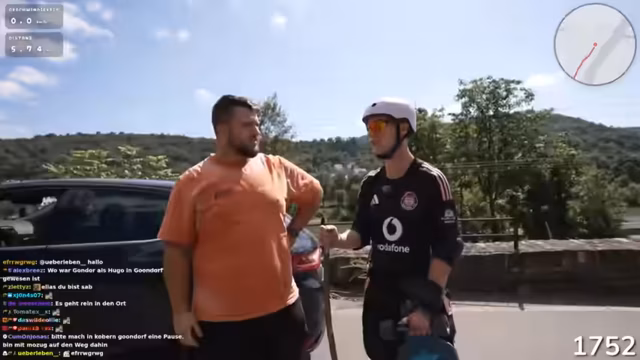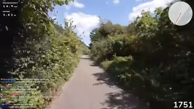 01:50:51Die Streamer erreichen die Umgebung von Koblenz nach einer langen Fahrt. Sie bemerken den Wechsel von Straße zu Fahrradweg und stellen fest, dass die Straße in schlechtem Zustand ist mit vielen Löchern. Die Strecke wird als geiles, aber auch peinliches Erlebnis beschrieben. Der Streamer äußert seine Freude über den bevorstehenden Fahrradweg, der als sehr lang und geeignet für ihre Tour gilt.