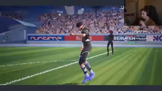 03:02:30Nach dem Sieg will der Streamer weiterspielen, um den Sieg zu sichern und sein Ranking zu verbessern. Er kritisiert erneut die Gegner, die seiner Meinung nach zu schwach sind. Die Stimmung ist angespannt, da die Zeit knapp wird und ein Mitspieler los muss. Der Streamer denkt über die Bewertung im Spiel nach und findet, dass Punkte für Verteidiger zu leicht zu erlangen seien, während Tore schwieriger zu erzielen seien.