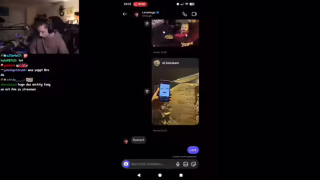 03:30:26Ein weiterer Zuschauer wird in den Stream geholt, um sein Handy zu zeigen. Der Zuschauer verwendet ein sehr großes, aber sauberes Handy. Es werden verschiedene Apps wie Instagram und Snapchat gezeigt. Der Zuschauer wird mit Nachrichten konfrontiert, die er anscheinend erhalten hat, was zu Verwirrung führt. Es wird ein Blick auf Marie geworfen, der der Zuschauer eine Nachricht schreiben soll.