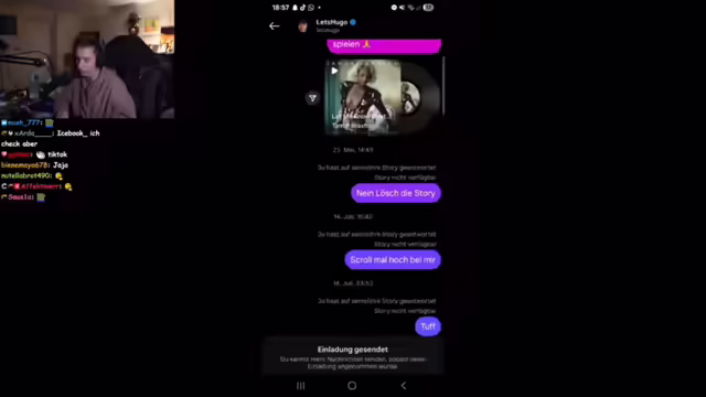 03:33:56Ein Zuschauer erlaubt einen Einblick in sein Handy. Zunächst wird der TikTok-Verlauf und die Likes unter die Lupe genommen, wobei anzügliche Inhalte nicht ausgespart werden. Anschließend werden weitere Apps wie Safari, Snapchat, Twitter, Firefox und Crunchyroll untersucht. Auch die App Character AI wird kurz geöffnet und der Verlauf gecheckt. Zuletzt werden noch Reddit und Instagram kurz geöffnet. Abschließend entschuldigt sich der Zuschauer bei einer Person namens Marie via Snapchat.
