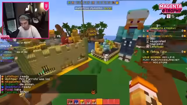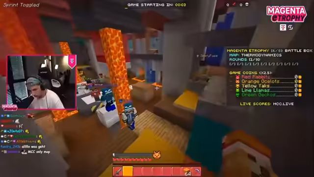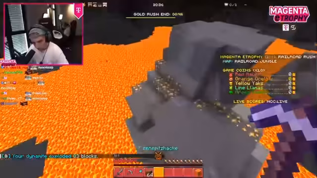 02:18:29Das nächste Spiel ist eine Bingo-Challenge, bei der das Team versucht, so viele Challenges wie möglich abzuschließen. Es gibt hektische Kommunikation, wer welche Ressourcen sammeln soll. Die Spieler verteilen sich über die Map, um Blöcke wie Glow Ink, Red Terracotta und Cookies zu farmen. Trotz anfänglicher Verwirrung gelingt es dem Team, einen zweiten Platz zu erreichen und damit viele Coins zu sichern.
