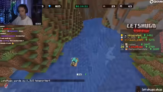 00:14:22Der Streamer analysiert seinen Bann und ist der Meinung, dass er gerechtfertigt sei. Er räumt ein, in der Vergangenheit „scheiße gebaut“ zu haben und hätte mit einem Bann für den Rest der Staffel rechnen können. Es folgt eine Diskussion über Gameplay-Strategien, das Leaken von Votings und die Existenz duplizierter Items auf dem Server. Gleichzeitig beschwert er sich über eine eigenwillige Schreibweise von „Minecraft“ in einem Chat.