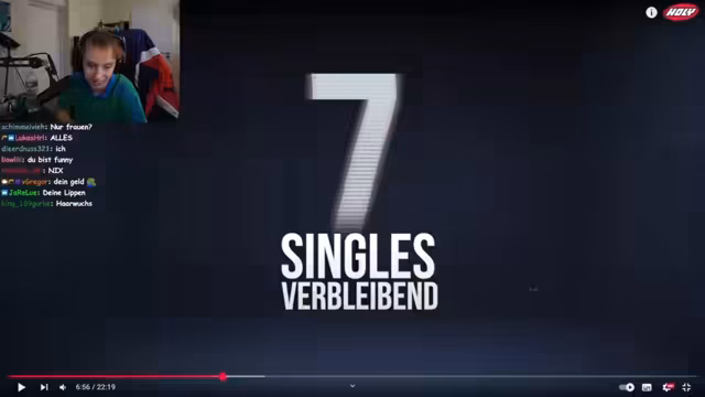 01:31:10Es wird über ein Spiel gesprochen, bei dem Pärchen die Möglichkeit haben, 200 Euro für ein unvergessliches Date zu gewinnen. Die Distanz zwischen den Teilnehmern, wie beispielsweise Aachen und Wien, wird als Herausforderung, aber auch als aufregend dargestellt. Es wird betont, dass ein Paar sich in einer Box geküsst hat, was als Argument für ihren Gewinn angeführt wird. Der Streamer äußert den Wunsch, Mädchen auf realer Basis zu daten und nicht erzwungen. Er spricht über seine Traumfrau und nennt Celebrity-Crushes wie Madison Beer. Eine Teilnehmerin äußert ihre Aufregung und Angst vor dem Moment, wenn sie im Licht gesehen wird, und befürchtet, aufgrund ihres Aussehens beurteilt zu werden. Es wird ein Ausweg angeboten, bei dem beide Singles unabhängig voneinander entscheiden können, ob sie die Liebe wählen oder die 200 Euro nehmen.