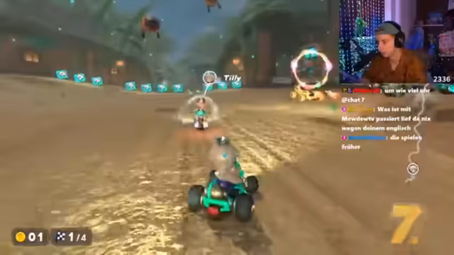 01:30:06Der Streamer äußert massive Frustration über das Spiel Mario Kart und bezeichnet es als Kack-Game. Er kündigt an, eine Public-Runde zu spielen, um alle Gegner zu ficken, und beschwert sich über die hohen Preise für Controller. Die Eintention der Gegner und deren Skills werden als problematisch empfunden, wobei Items als störender Faktor genannt werden.