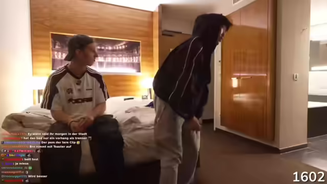 02:38:20Nach der Essensbestellung bei Immergrün kommt die Frage auf, wo das Fußballspiel Deutschland gegen Luxemburg geschaut werden kann. Es wird überlegt, ob man eine Coach-Reaction im Stil von L.A. machen soll. Es folgt eine Diskussion über die bestellten Wraps, wobei es zu einer Verwechslung kommt und ein Mexikan-Wrap zu viel geliefert wurde. Der Streamer fragt im Chat, ob jemand in Hamburg bekannt ist, mit dem man das Spiel zusammen schauen könnte. Die Fußballbegeisterung führt zu Überlegungen, Wetten auf das Spiel abzuschließen und bei einem Tor von Luxemburg zu trinken. Es wird über die Aufstellung der deutschen Mannschaft diskutiert und die Frage aufgeworfen, ob Luxemburg eine Chance hat. Währenddessen wird überlegt, ob man das Spiel in einer Sportkneipe oder im Hotelzimmer schauen soll, wobei Bedenken hinsichtlich des Streamens in einer Sportkneipe geäußert werden. Der Streamer sucht im Chat nach Vorschlägen, wo man das Spiel schauen könnte und äußert den Wunsch, eine Watch-Party zu veranstalten.