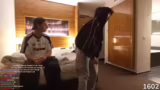 03:35:58Nach dem Einchecken im Hotel wurde überraschend ein Zimmer-Upgrade gewährt, da angeblich der "Jackpot geknackt" wurde. Statt des gebuchten Doppelzimmers wurde eine luxuriöse Suite im 15. Stock bezogen. Die Fahrt nach oben gestaltete sich abenteuerlich mit einem Aufzug, der anscheinend sehr hoch fährt. Es wird die Aussicht und das Ambiente der Suite bestaunt, die einen antiken Touch hat. Während der Fahrt im Aufzug gibt es lustige Kommentare und Interaktionen, bevor die Kamera wieder eingeschaltet wird. Es wird überlegt, wo die Sachen hingelegt werden sollen, während man sich im Zimmer umsieht. Es wird kurz überlegt, ob ein Fernseher vorhanden ist. Es wird festgestellt, dass das Internet trotz der hohen Lage schlecht ist.