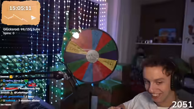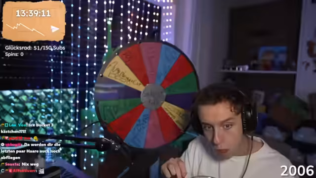 00:12:58Das Glücksrad wird vorgestellt, dessen Inhalte jedoch noch nicht final sind und diskutiert werden können. Der Streamer bittet um Vorschläge aus dem Chat. Einige der geplanten Aktionen auf dem Glücksrad sind ein Augenbrauen-Cut, doppelte Streamzeit für 10 Minuten oder 5 Minuten, drei Stunden Stream, eine Stunde Stream, ein „totes TikTok“ (vermutlich ein TikTok ohne Interaktion oder mit schlechtem Inhalt), Haare blondieren (mit mehreren Kästchen für die Intensität), eine Ice Bucket Challenge und Reroll-Optionen. Wachsstreifen werden von der Liste gestrichen, da diese erst bestellt werden müssten. Es wird überlegt, 30 Minuten Rudern als Aktion hinzuzufügen, die jedoch nicht sofort, sondern abends durchgeführt werden soll.