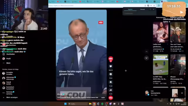 01:38:53Der Streamer prognostiziert für den nächsten Tag deutlich weniger Zuschauer, da er als einziger nicht Minecraft streamen kann. Er äußert Verwirrung über den Begriff "deutsches Stadtbild", der anscheinend ein Meme ist, das er nicht kennt. Im Chat wird eine rassistische Aussage von Merz erwähnt, und der Streamer fragt nach einem Clip dazu. Es folgt ein Audioclip, in dem der Bundeskanzler über Probleme im Stadtbild spricht und sich weigert, seine Aussage zurückzunehmen, was zu Irritationen führt. Der Streamer versteht nun, was mit dem "Stadtbild" gemeint ist und erkennt die Anspielungen, die im Chat und in anderen Streams gemacht wurden.