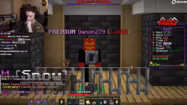 01:43:09Nach dem Unboxing wechselt der Streamer zu Minecraft, betritt den Server und berichtet von technischen Updates, wie der Erhöhung der Hopper-Geschwindigkeit und dem behobenen Filterzustand bei SlashOrder. Er erwähnt die Reaktivierung von Farmen, etwa der Kaktus-Farm, und diskutiert Probleme mit dem Server, einschließlich eines Rechenzentrum-Ausfalls, das 'gesprengt' wurde. Es gibt Interaktionen mit der Community über den Bau von Strukturen, PvP-Situationen und den aktuellen Spawn-Status, wobei er auf Spielemechaniken wie RTP (Random Teleport) eingeht. Keine direkten Kooperationen, aber es werden Entwickler gesucht.