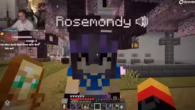 03:04:48Rose hat ein beeindruckendes Café gebaut, das an ein Katzen-Café in Japan erinnert. Sie hat sich in ihren Baufähigkeiten stark verbessert, seit ihren Anfängen bei FitnaCraft, wo ihr erstes Haus ein einfacher Würfel aus Wolle in der Luft war. Neben dem Café zeigt Rose auch ihre Hundefamilie, die sie als 'Gründerhunde' bezeichnet. Die Spieler sind beeindruckt von Roses Fortschritten und der Detailverliebtheit ihrer Bauwerke. Es wird auch über die Möglichkeit gesprochen, dass Rose und Noreax ein Date haben könnten, was jedoch von Trimax ins Spiel gebracht wurde und nicht ernst gemeint ist.