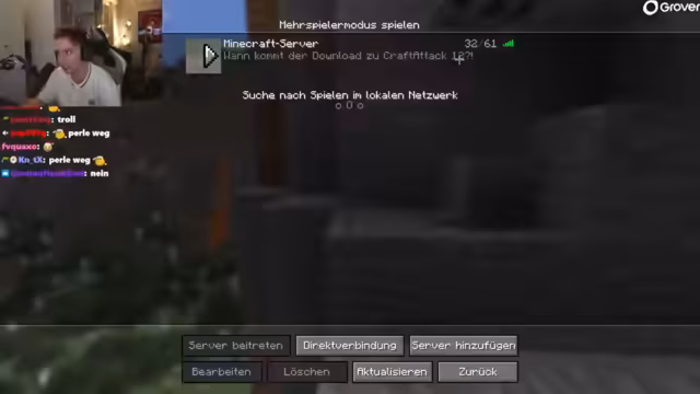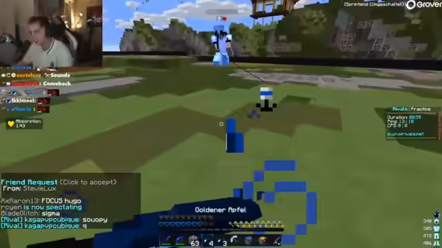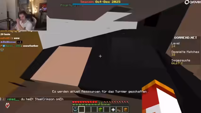 04:55:20Der Streamer versucht, Survival Games auf dem GommeHD-Server zu spielen, stößt jedoch auf technische Probleme. Er bemerkt, dass er sich auf der falschen Minecraft-Version befindet, stellt dies aber schnell richtig. Der Versuch, einem Turnier beizutreten oder ein eigenes zu erstellen, scheitert zunächst an einer 'Whitelist'-Einstellung. Nach einiger Verwirrung gelingt es ihm, ein UHC-Kids-Turnier zu starten. Während des Spiels beklagt er sich über ein 'schwammiges' Gefühl seiner Minecraft-Performance und niedrige FPS-Werte, was er auf das Alter seines PCs zurückführt. Die Situation wird mit Humor genommen, während er versucht, sich an das PvP-Gameplay anzupassen und die technischen Schwierigkeiten zu überwinden.