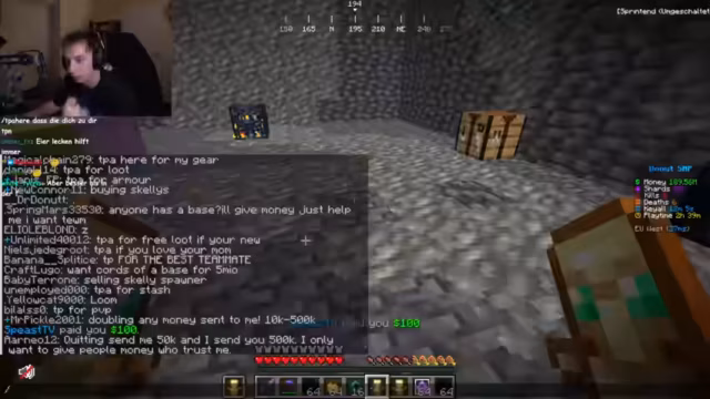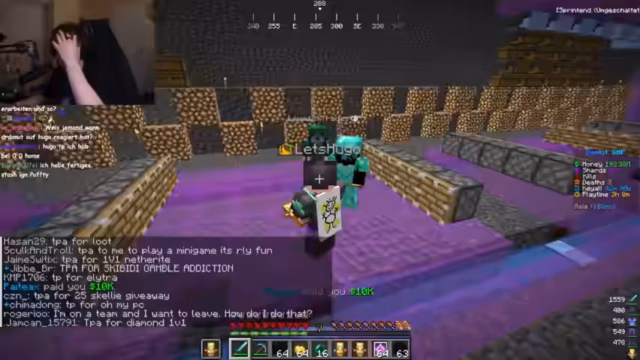 04:09:19Die Stimmung wechselt zu PvP-Aktivitäten, wobei der Streamer erklärt, dass er in Netherite-Rüstung kämpft, aber seine Schwerter als schwach empfindet. Nach einer verlorenen Auseinandersetzung zeigt er Frustration und bemängelt, dass er keine zufälligen Gegner ohne Zuschauer finden kann. Er probiert verschiedene TPA-Anfragen, um Gegner zum Kampf herauszufordern, was jedoch oft in Fallen endet oder von den Gegnern ignoriert wird.