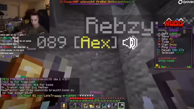 02:49:24Der Streamer rekrutiert neue Mitglieder für seinen Clan, die sich als chaotisch und unfähig erweisen. Ein neues Mitglied erhält den Status 'Trial' und wird getestet. Der Fokus liegt auf PvP-Drills, bei denen er sich selbst und andere Clanmitglieder in 1-gegen-1-Kämpfen üben. Dabei werden Meta-Strategien mit Maces, Crystals und Tränken diskutiert und ausgeführt.