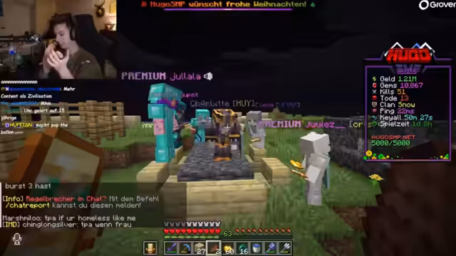Es wurden persönliche Weihnachtsgeschenke präsentiert. Danach wurde ein Minecraft-Spiel besucht, auf dem als Clan gegen andere Spieler gekämpft wurde. Dabei wurde über Ausrüstung diskutiert und intensiver PvP betrieben, um Ressourcen zu sammeln.
