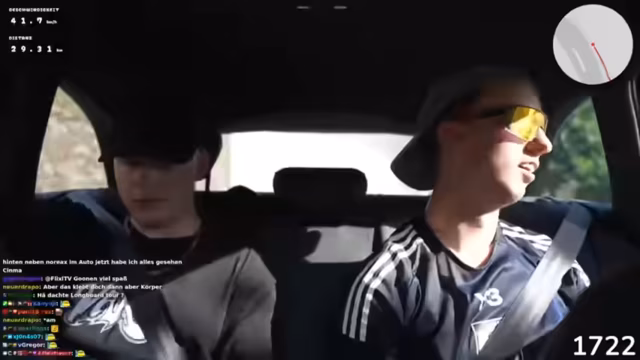 01:30:23Zu Beginn des Streamabschnitts treten erhebliche technische und körperliche Probleme auf. Ein fliegender Wechsel auf dem Longboard misslingt, was bei Faki zu körperlicher Anstrengung und Enttäuschung führt. Gleichzeitig bereiten technische Schwierigkeiten mit der Kamera und dem Mikrofon Kopfschmerzen, da der Lüfter ausgefallen und die Kamera sich überhitzt und abschaltet. Streamer Hugo und Luca versuchen verzweifelt, die Kameraeinstellungen zu ändern, um die Überhitzung zu verhindern, was die Fahrt unterbricht und Frustration auslöst.