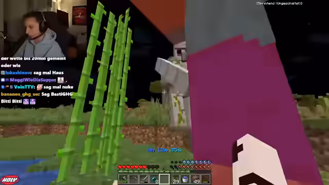 02:51:52Der Stream beginnt mit einer Herausforderung, in der bestimmte Wörter in Minecraft spezifische Effekte auslösen. Der Streamer und sein interagieren dabei, stoßen aber auf anfängliche technische Schwierigkeiten wie Ruckeln und das Fehlen von essentiellen Ressourcen wie Wasser. Auch die Mechanik, die Aktionen der Spieler verzögert, wird thematisiert, da zu viel gesprochenes Chat-Tempo zu Hängern führt. Das Ziel ist es, Nahrungsmittel und Trinkwasser zu finden, um überleben zu können.