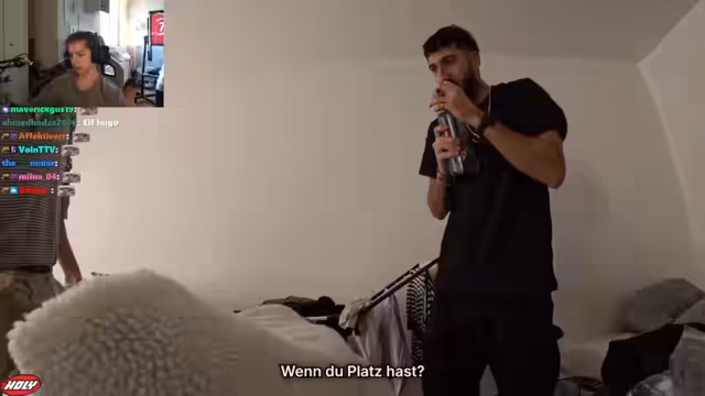 01:09:15Während die Piccolinis im Ofen backen, bereitet der Streamer spontan einen Salat zu, was eine längere und ungewöhnliche Sequenz im Stream darstellt. Um die Wartezeit zu überbrücken, schaut er sich Instagram-Reels an, insbesondere die von The Race, und unterhält sich über das Format und die Teilnehmer. Dies dient als Füllstoff und zeigt den spontanen, alltäglichen Charakter des Streams.