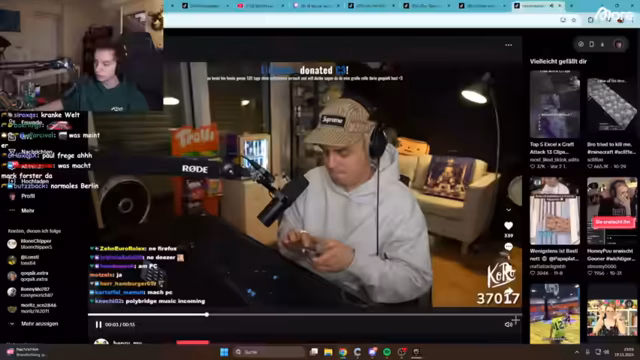 01:36:23Während des Streams liest der Streamer eine persönliche Nachricht eines Zuschauers vor. Dieser teilt mit, dass sein bester Freund verstorben ist und sich für die Unterhaltung bedankt. Der Streamer reagiert sehr berührt und zeigt Mitgefühl. Dieses ernste Thema unterbricht die vorherige lockere Stimmung und führt zu einem Moment der menschlichen Verbundenheit im Stream, was auch zu einer spontanen Spendenaktion im Chat führt.