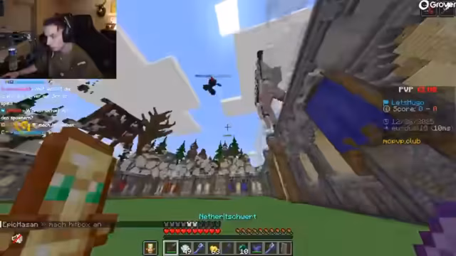 02:26:39Zu Beginn des Streamabschnitts beschäftigt sich der Streamer intensiv mit dem Spielgeschehen auf HugoSMP. Es geht hauptsächlich um PvP-Auseinandersetzungen, wobei er von einem anderen Spieler dominiert wird und mehrfach stirbt. Er äußert Frustration über seine Spielweise und den Leistungsnachteil im Vergleich zum Gegner. Parallel dazu interagiert er mit dem Chat, beantwortet Fragen und zeigt humorvolle Reaktionen auf Kommentare. Zudem gibt es kurze technische Auseinandersetzungen mit Chatspam und einen spontanen Raid auf dem Server, der kurzzeitig für Chaos sorgt. Die Stimmung ist geprägt von Wettbewerb, Frust und ständiger Interaktion mit der Community.