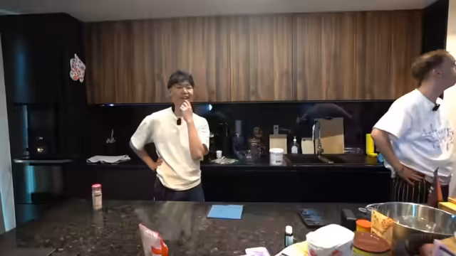 01:38:21Bei der Zubereitung entstehen große Probleme durch falsche Zutaten. Anstatt Vanillezucker wird Küchenrolle mit Vanilleextrakt vermischt, was als ekelhaft empfunden wird. Zudem wird die Zutat 'Ei mit Schale' missverstanden und als solche verwendet. Beide Streamer beteuern, dass es trotzdem funktionieren wird, auch wenn das Ergebnis fraglich ist.