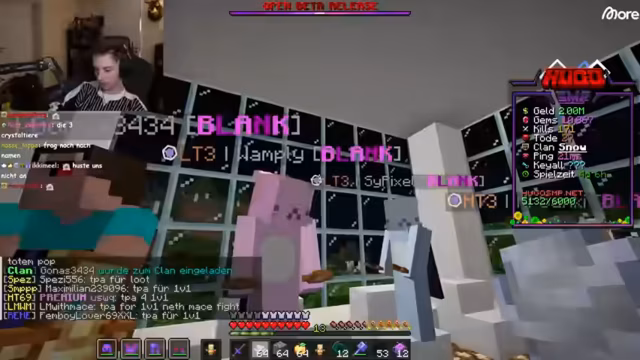 02:08:14Ein Raufteil an einer anderen Basis eskaliert schnell, als der Streamer mit einer feindlichen Gruppe konfrontiert wird. Währenddessen beschreiben Chat und der Streamer ein massives Treffen von Spielern mit bis zu 60 Teilnehmern, was zu einem chaotischen und lauten Szenario führt. Der Streamer ist bei dem Versuch beteiligt, den Feinden zu entkommen und versucht, seine Perle und Inventar zu schützen.