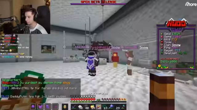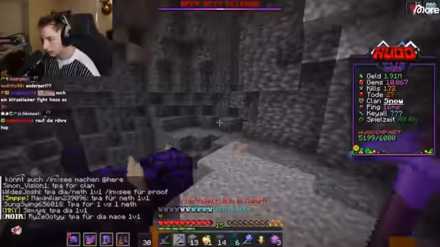 00:29:01Neben dem Hauptspiel beschäftigt Hugo sich mit Nebenquests wie Raids und Clans. Er raidt eine Base, ohne konkreten Loot zu finden, und trainiert Crystal-Fähigkeiten. Später nimmt er drei neue, 14-jährige Spieler unter den Namen 'die drei Muskeltiere' und 'den Dummen' testweise in seinen Clan 'HIT' auf, nachdem sie sich als nette PvP-Spieler ohne toxisches Verhalten präsentiert haben.