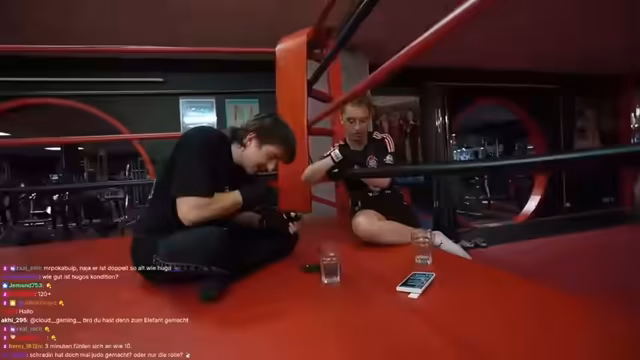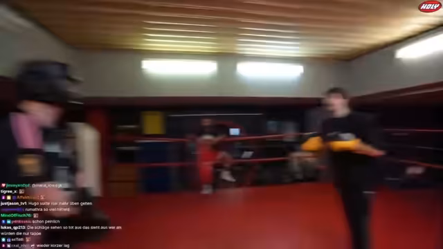 00:14:28Die Ankunft im Boxstudio gestaltet sich etwas chaotisch. Es gibt technische Probleme mit dem Stream und der Internetverbindung. Nachdem die Technik soweit stabilisiert ist, begrüßt der Streamer seinen Gegner Wieland. Es wird der Rahmen des bevorstehenden Kampfes besprochen, der auf Low-Key ohne gezielte Kopftreffer ausgelegt ist. Wieland erwähnt, dass sein Aneurysma, eine frühere Verletzung, nicht mehr vorhanden ist, aber der Streamer bittet ihn trotzdem vorsichtig zu sein. Die Stimmung ist angespannt und auf den bevorstehenden Fight ausgerichtet.