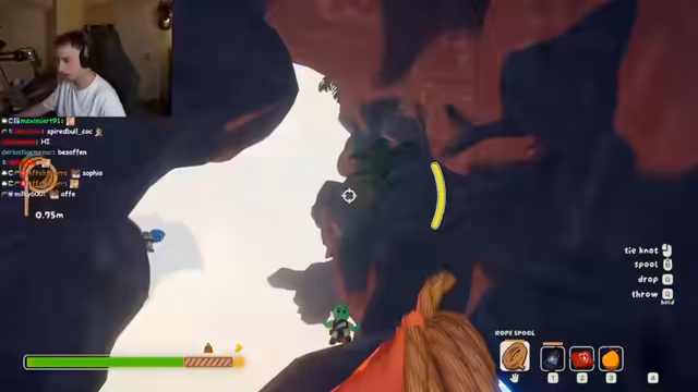 04:40:57Nach dem Höhepunkt des Konflikts kehrt das Team zum Gameplay zurück. Die Erkundung einer neuen, optisch beeindruckenden Ebene beginnt, die durch Felsen und gefährliche Schlingfallen geprägt ist. Die Herausforderungen sind jetzt weniger gegen Monster als vielmehr gegen die Spieltiefe und die Koordination. Die Spieler müssen die Mechaniken wie Klettern und das Management der Ausdauer (Stamina) meistern, um eine mysteriöse „Restaurant“-ähnliche Struktur zu erreichen, die als Schlüssel für den Fortschritt gilt.