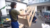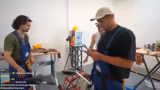 00:55:30Nachdem die grundlegende Rahmenstruktur steht, konzentriert sich das Team auf das Anbringen von Details wie dem Villager-Kopf und weiteren Verzierungen. Es werden Löcher gebohrt und Teile mit Kabelbindern befestigt. Die Stabilität der Konstruktion wird immer wieder überprüft. Parallel dazu werden Gespräche über zukünftige Projekte und Kooperationen geführt, was eine kreative und produktive Atmosphere im Team trotz der anfänglichen handwerklichen Hürden schafft.