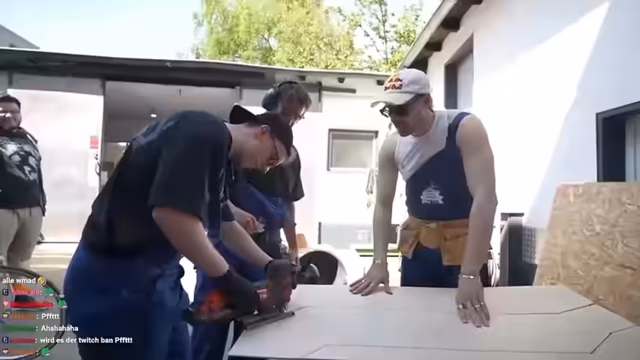 03:09:53Die Hauptaktivität ist der Bau eines unkonventionellen, handwerklich sehr ambitionierten Gefährts. Dieses soll beim bevorstehenden Sattelfest benutzt werden. Die Streamer sind sich der hohen Gefahr bei der Nutzung ihres selbstgebauten Vehicles bewusst und planen entsprechende Sicherheitsvorkehrungen wie Helme. Die Spannung steigt, da sie sich auf den bevorstehenden Wettbewerb freuen, aber auch um die Haltbarkeit ihrer Konstruktion besorgt sind.