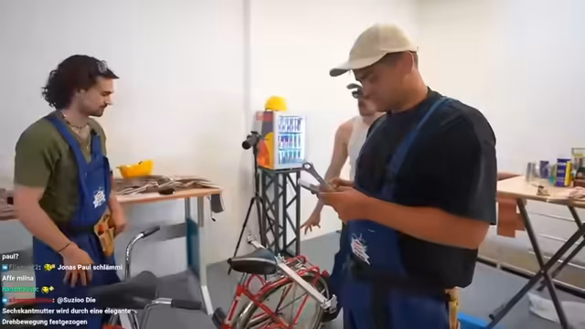 00:12:31Der Stream beginnt mit der Begrüßung der Community und der Vorstellung des Projekts: dem Bau von Fahrrädern für das Red Bull Sattelfest. Das Team von letshugotv, bestehend aus Paul Frege, Niki Stemmler, Agathe und Hugo, tritt in einer Challenge gegen andere Creator an. Geplant sind drei verschiedene Red Bull-Events. Jedes Team erhält die Aufgabe, ein einzigartiges Fahrrad zu konstruieren, basierend auf von der Community erstellten KI-Entwürfen. Die Teilnehmer erhalten Material und Werkzeug sowie grundlegende Anweisungen zur Umsetzung.