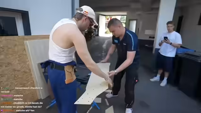 03:01:03Die Streamer unterhalten sich über verschiedene Hilfsangebote von Zuschauern und bewerten ihre eigenen handwerklichen Fähigkeiten als sehr gering. Sie diskutieren die Möglichkeit, einen Ausbildungsplatz in einer Werkstatt zu bekommen und zweifeln an ihrer eigenen Eignung. Dabei wenden sie sich auch dem Alltag zu und planen Aktivitäten wie den Kauf eines Hauses. Gleichzeitig wird der extreme Arbeitsaufwand thematisiert, der aus einer Mischung aus Spaß und Frustration besteht.