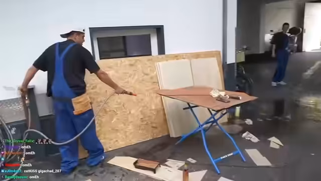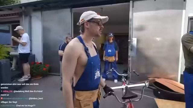 02:42:19Der Stream beginnt mit handwerklichem Chaos, bei dem versehentlich der Boden mit Farbe angemalt und das Fahrrad sabotiert wird. Die Teilnehmer reiben sich an ihrer mangelnden handwerklichen Begabung und beschäftigen sich humorvoll mit der Frage, wer für die entstandenen Schäden verantwortlich ist. Dies führt zu witzigen gegenseitigen Vorwürfen und der Erkenntnis, dass ihre gemeinsamen Anstrengungen zu einem eher unfertigen und chaotischen Ergebnis führen. Trotz der Rückschläge bleibt die Stimmung gelassen und von selbstironischem Humor geprägt.