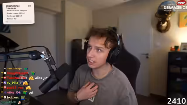 00:46:59Die Challenge beginnt mit dem Spiel Fortnite. Der Streamer diskutiert seine anfängliche Strategie, welche Spiele er wann spielen möchte. Er sieht in Bottle Flip eine leichte Möglichkeit, Zeit hinzuzugewinnen, falls die Challenge kurz vor dem Scheitern steht. Nach einer eher erfolglosen Fortnite-Runde, in der er früh eliminiert wird, wechselt er das Spiel und startet Rocket League. Dort muss er ein Spiel direkt gewinnen, um den ersten Teil der Challenge abzuschließen und 30 Minuten Zeit gutzuschreiben.
