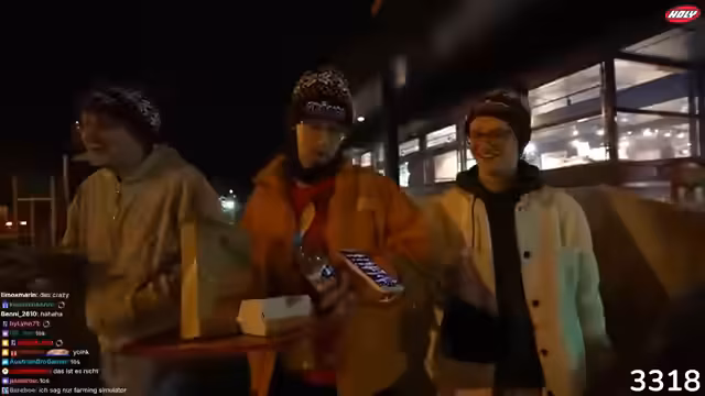 03:29:31Es wird die Ankunft von 302 Bestellungen für den Merch der Tour gefeiert, der aus einer Mütze, Socken und einem T-Shirt besteht. Ein Timer für den Grenzübergang nach Dänemark wird eingerichtet, wobei humorvoll hinzugefügt wird, dass Mautgebühren anfallen. Die Route wird als wenig ansprechend beschrieben, wobei Deutschland als 'traurig und ekelhaft' bezeichnet wird, mit Ausnahme von Marburg. Es wird die Möglichkeit erwähnt, einen Viewer in der Nähe von Hamburg zu besuchen, dessen Bestellung gerade bestätigt wurde. Die Streamer äußern ihre Begeisterung über die Idee, Fans persönlich zu treffen. Es wird erwähnt, dass die Unterkünfte für die Tour gebucht sind, wobei die letzte Nacht in einem Gefängnis verbracht wird. Die Diskussion dreht sich um die Interaktion mit der Community, die Planung der Route und die Vorfreude auf die bevorstehenden Erlebnisse.