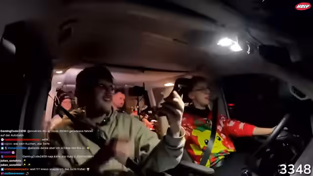 04:55:51Der Stream beginnt mit einer kurzen Einschätzung der Motion Sickness der Reisebegleiter. Die Gruppe erwähnt die bisherige Stabilität der Reise, bevor die Fahrt durch deutsche Orte mit biomarkt, Tanke und Aldi fortgesetzt wird. Es folgen humoristische Anekdoten über ein Missverständnis mit einer Person in einem Laden und ein geplantes gemeinsames Streamen, das für den nächsten Tag anvisiert ist. Die allgemeine Stimmung ist entspannt und von Vorfreude geprägt.