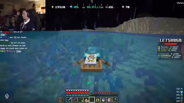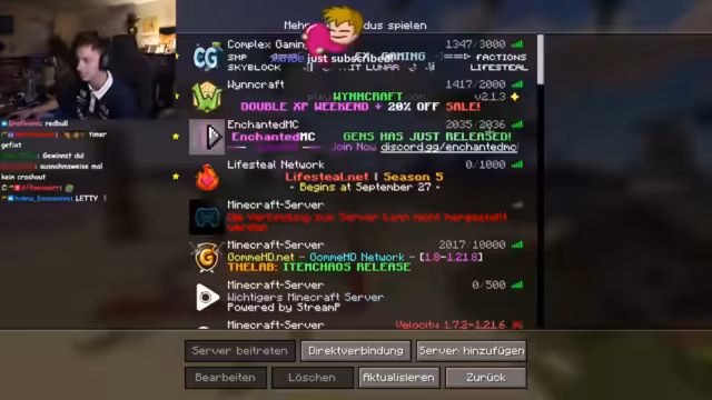 01:40:19Der Streamer startet das PvP-Run Event in Minecraft und erklärt die Regeln. Die Teilnehmer haben eine Stunde Zeit, Ressourcen wie Essen, Rüstung oder Tränke zu farmen. Anschließend beginnt ein zweistündiger Deathrun, bei dem alle gegenseitig angreifen und sich töten können. Der Gewinner ist der, der nach zwei Stunden die meisten Blöcke zurückgelegt hat. Es gibt technische Schwierigkeiten bei der Serverversion und dem Voice-Chat-Setup.